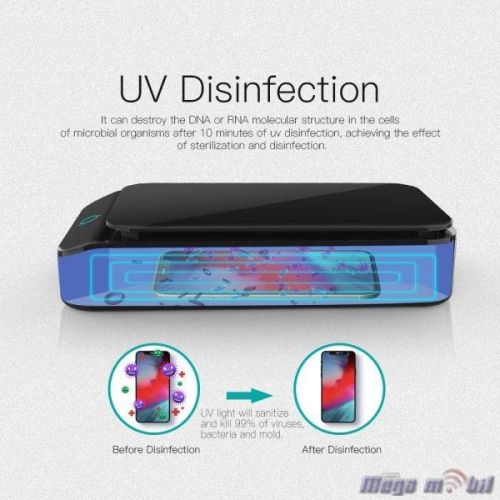 The construction of the UV light source in the box ensures 360° coverage of the devices by effective UV light.