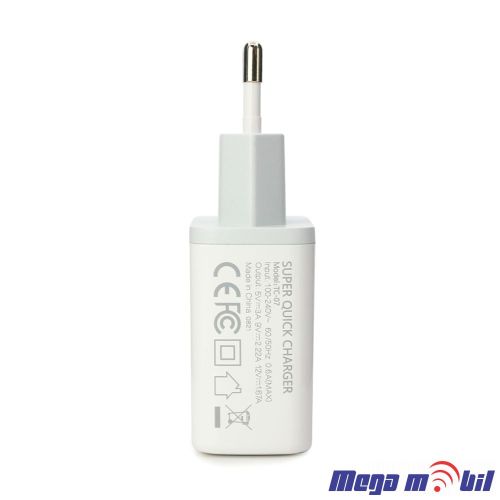 SUPER QUICK CHARGERInput: 100-240V, 60/50Hz, 0.6A(MAX)Output: 5V-3A, 9V2.22A, 12V-1.67A