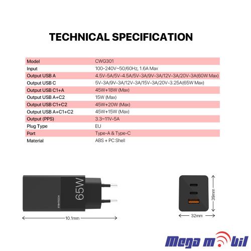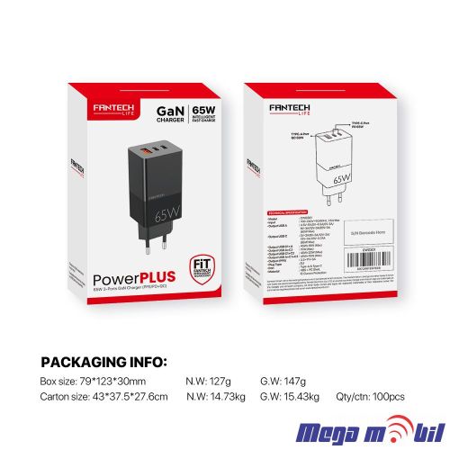 Polnac 220V Fantech CWG301 3 Port PPS/PD+QC FAST 65W.