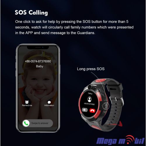 | Other features | Electronic fence (GEO),History tracking,Alarm clock,Find watch , phone book, working mode, Remote shutdown watch, support APP for Android and IOS smartphone. |