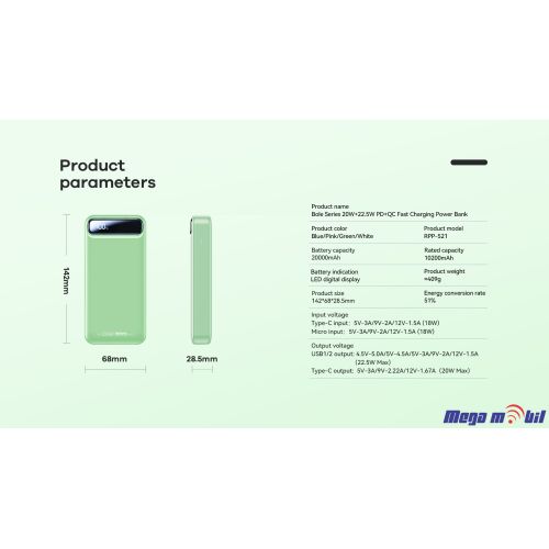 Baterija eksterna 20000mAh REMAX Bole RPP-521 FAST+PD blue