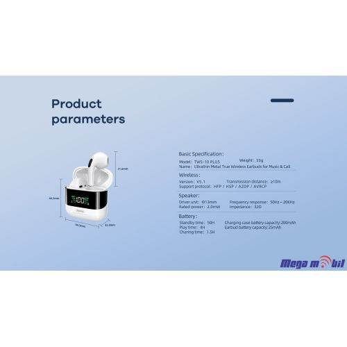 Basic Specification: Model: TWS-10 PLUS Weight: 33g