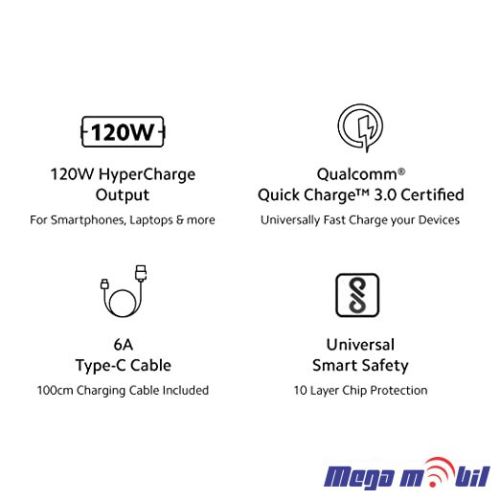 - 120 W HyperCharge Combo (Mi/Xiaomi/Redmi Charger, 120W Hyper Charge Output, 5V-3A/9V-3A/11V-6A/17V-6A/20V-6A, Universal Output, Superfast 6A Type C, Laptop Charger, Included Type C Cable)