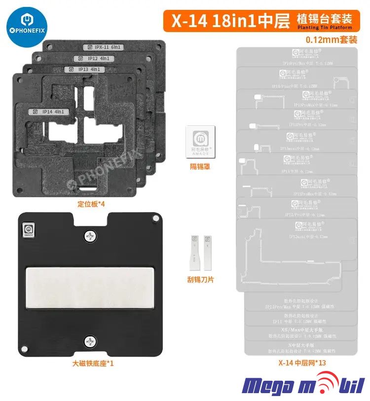 Resetka za BGA iPhone X-16 Pro Max SET 28 vo 1 Middle frame rebaling platform
