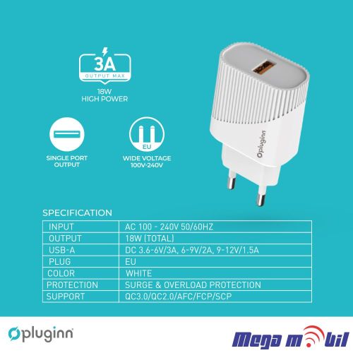 Polnac 220V Micro Pluginn PI-D52S QC3.0 18W