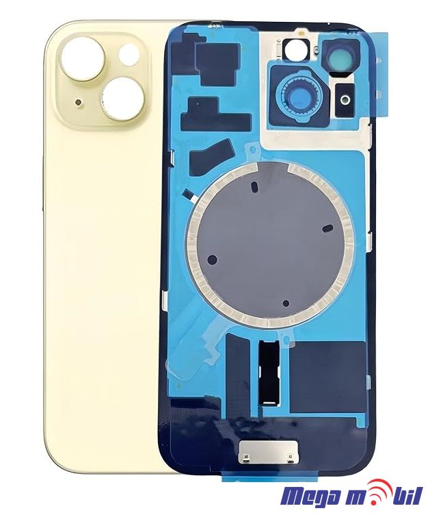 Zadno staklo iPhone 15 Yellow so magneti za wireless i stakla za kamera