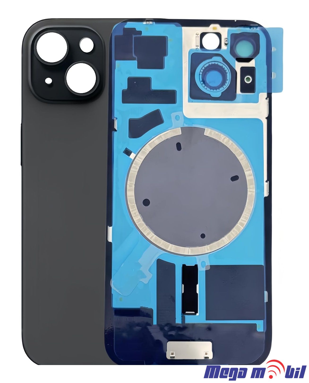 Zadno staklo iPhone 15 Plus Black so magneti za wireless i stakla za kamera