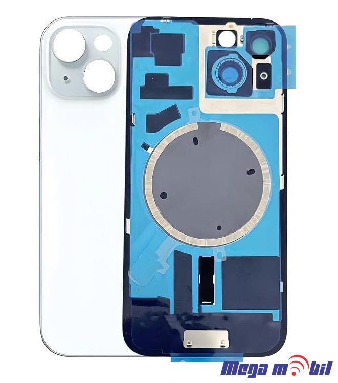 Zadno staklo iPhone 15 Plus White so magneti za wireless i stakla za kamera
