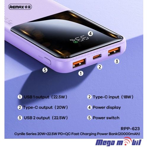 Baterija eksterna 20000mAh REMAX Cynlle RPP-623 FAST+PD black