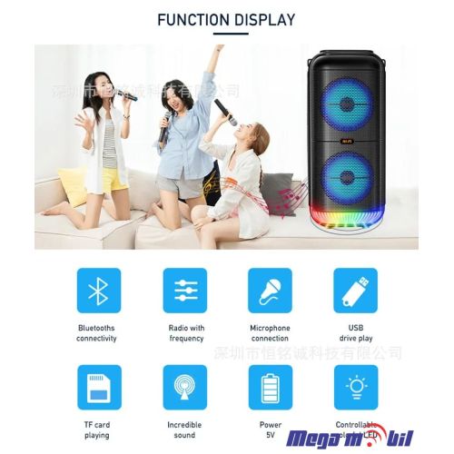 | Function | Bluetooth ,FM , TF,USB,AUX,TWS,Karaoke Microphone,RGB Light,Remote Control |