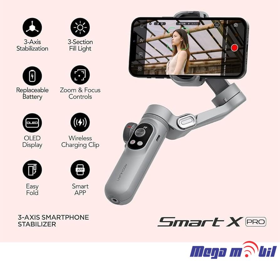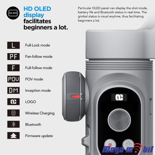 5. 310g Ultralight Design with HD OLED Display: The ultra light body can be easily held in one hand. Plus the collapsible design, X Pro occupies little space in your backpack or overcoat pocket. Light pack travel becomes possible for outdoor photography; Particular OLED panel can display the shot mode, battery life and Bluetooth status in real time, the gimbal status is visual anytime, facilitating beginners a lot.