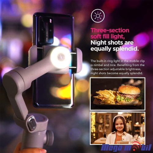 1. Upgraded 3-axis Stabilizing System& Three-sectionsoft Fill Light: Fast fold or unfold in one second. Enjoy shooting anywhere and any time. Upgraded 5.0 anti-shake algorithm make gimble moves more steady. The built-in ring light in the mobile clip is nimbal and nice. Benefiting from the three-section adjustable lightness, night shots become equally splendid.