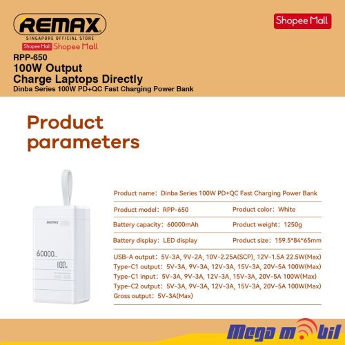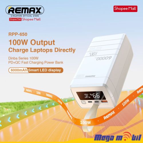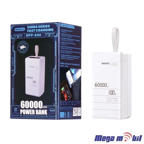 Baterija eksterna 60000mAh REMAX Dinba RPP-650 FAST+PD 100W white