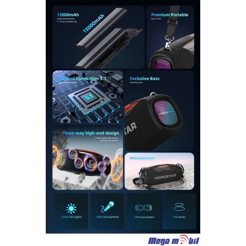 Zvucnik Bluetooth Karaoke Hopestar A60 so mikrofon blue