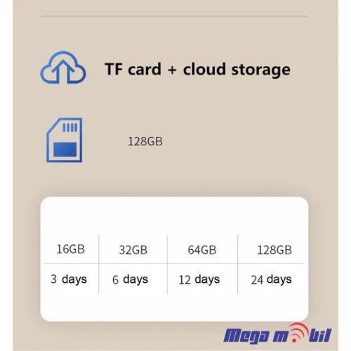 Local storage TF card (up to 128GB)