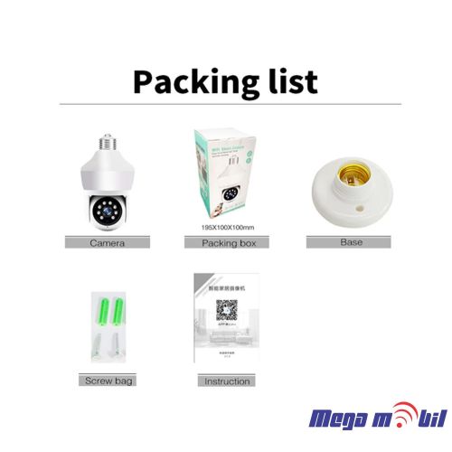 Accessories Camera: x1 Screw package: x1 Manual: x1 E27 interface: x1