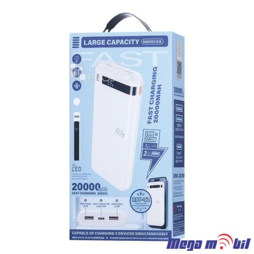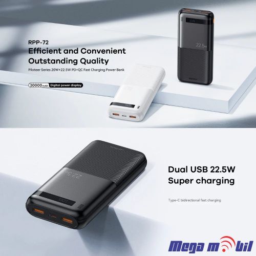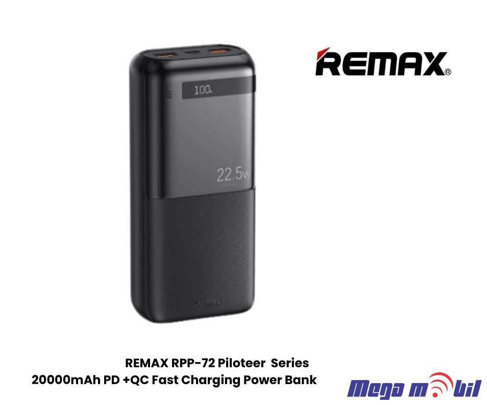 Baterija eksterna 20000mAh REMAX Piloteer RPP-72 FAST 22.5W+PD 20W black