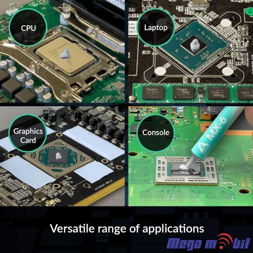 - VERSATILE APPLICATION: With its new composition, the MX-6 is suitable for many application scenarios. Thanks to its viscosity, it is also suitable for direct-die cooling scenarios for GPUs of graphics cards or console processors