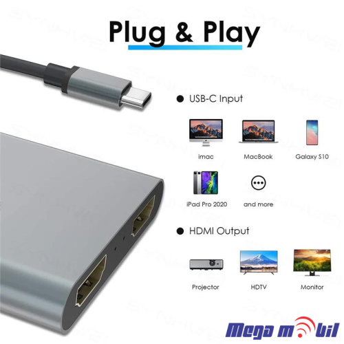Adapter Terabyte Type C na HDMIx2 PD USB 3.0 4vo1