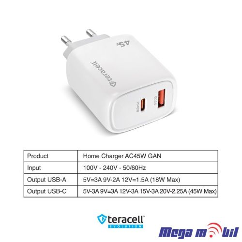 Polnac 220V Type C Teracell Evolution TC-19, GaN, QC, PD, 45W white