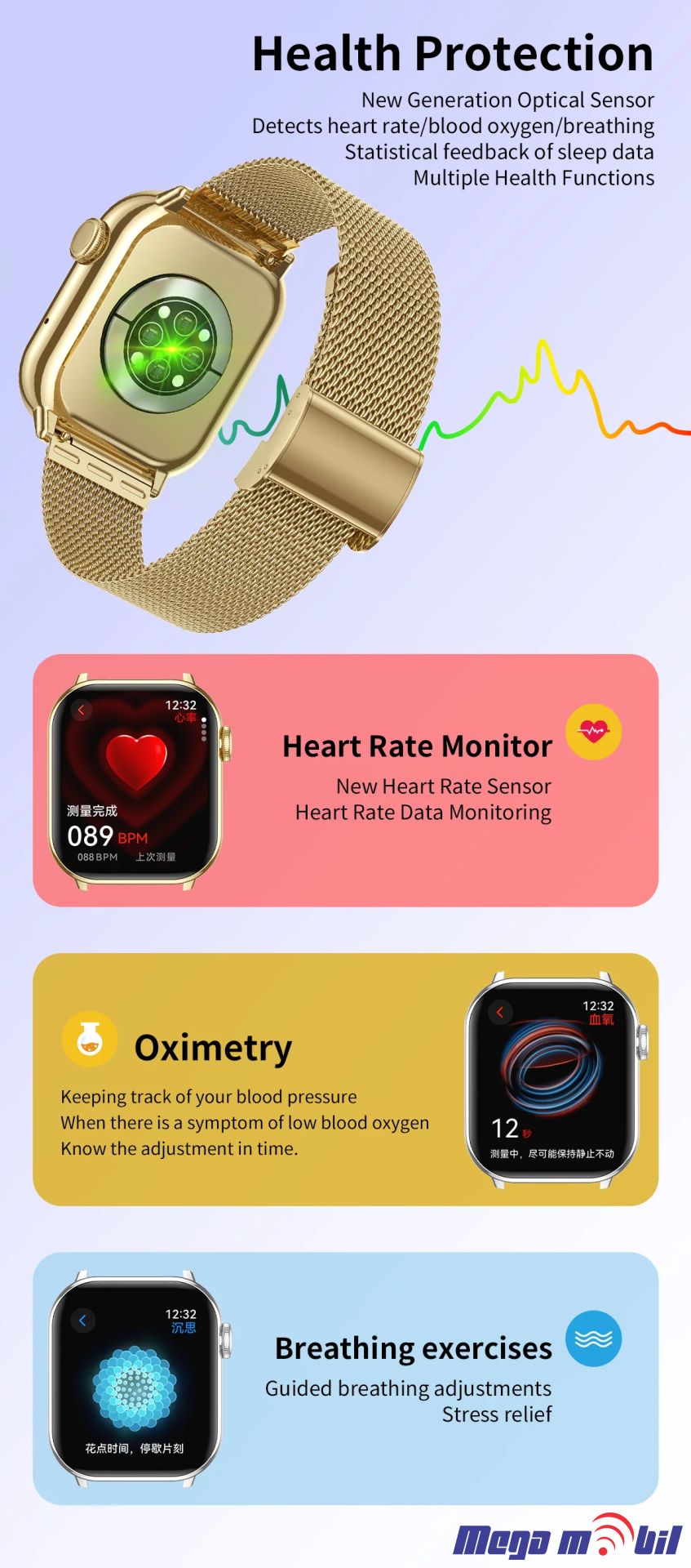 | chronograph, Lighting, Alarm Clock, MONTH, Remote Control, Countdown, Sleep Tracker, Fitness Tracker, Passometer, Call Reminder, Answer Call, Push Message, Message Reminder, Dial Call, Heart Rate Tracker, Blood oxygen monitor