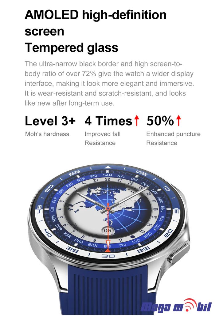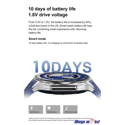 Модел: DT Watch X Компатибилни оперативни системи: Android 4.4+ и iOS 10.0+ Апликација за поврзување: WearPro Верзија на Bluetooth: Двоен Bluetooth 5.3 Големина на екранот: 1,43 инчи Резолуција на екранот: 466*466 Тип на екран: AMOLED Димензии на часовникот: 46*46,69*13,50 mm Број на нараквици во пакувањето: 2 Ширина на нараквицата: 22 mm Материјал на нараквицата: Силиконска и кожна нараквица Капацитет на батеријата: 390 mAh Тип на батерија: Литиумска батерија Автономија: 4-5 дена нормална употреба, 10 дена режим на подготвеност Време на полнење: 3 часа Метод на полнење: Магнетно безжично полнење Чип: ATS3085S Меморија: 4GB Ниво на водоотпорност: IP68 Поддржани јазици на часовникот: англиски, француски, шпански, германски, италијански, чешки, арапски, персиски, дански, полски, португалски, јапонски, Корејски, холандски, виетнамски, турски, руски, украински, грчки, поедноставен и традиционален кинески Поддржани јазици на апликацијата: кинески, традиционален кинески, англиски, корејски, германски, шпански, јапонски, француски, италијански, руски, португалски, арапски, украински, тајландски (сијамски) Функции: Спортски режими, следење на отчукувањата на срцето, следење на спиењето, временска прогноза, мерење на сатурација на кислород во крвта (SpO2), контрола на музика, вежби за дишење, контакти, пораки, калкулатор, игри, аларм, штоперица, тајмер, фенерче, пребарувач на телефон (кога телефонот е поврзан), контрола на камерата, 9 стилови на мени, прилагодување на осветленоста, потсетници, 3D мени, галерија, TWS поврзување, видео плеер