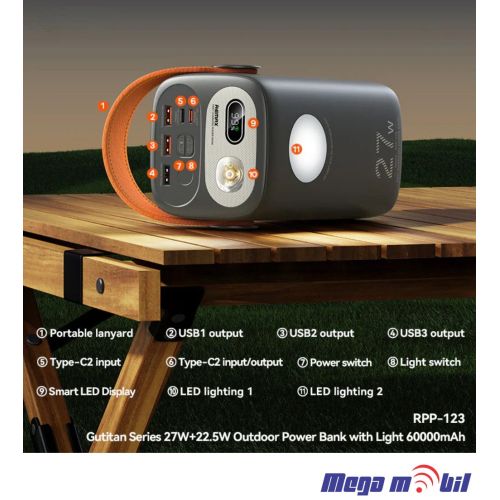 Baterija eksterna 60000mAh REMAX Gutitan RPP-123 PD 27W+QC 22.5W beige