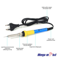 This soldering iron hand tool is used in soldering electrical components and supplies heat to melt solder so that it can flow into the joint between two workpieces heated metal tip to do the soldering work precisely and protect the sensitive components as well. Insulated handle design makes it is safe and comfortable to operate.60W electric power soldering iron hand tool temp ranging from 200-450℃.Suitable for many kinds of soldering station and soldering works.