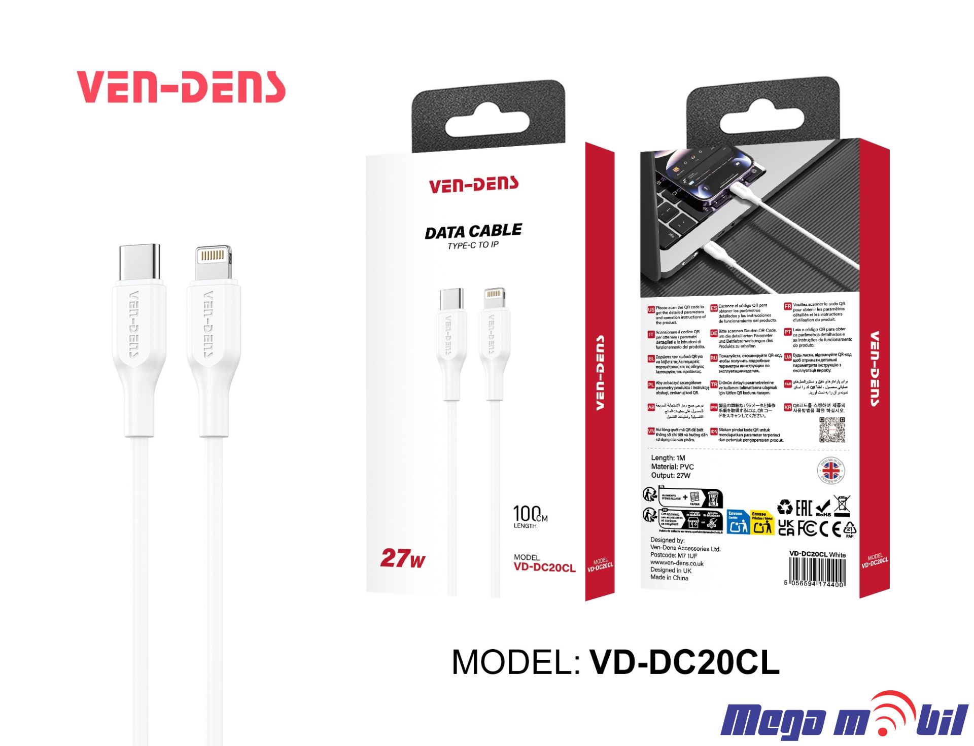 Name: Type-c to Lightning CableLength: 1MMaterial: PVCOutput: 27WCable specification: 2C * 0.1 * 26 pins, 3C*0.08*10 pins, OD3.5mmColor: White