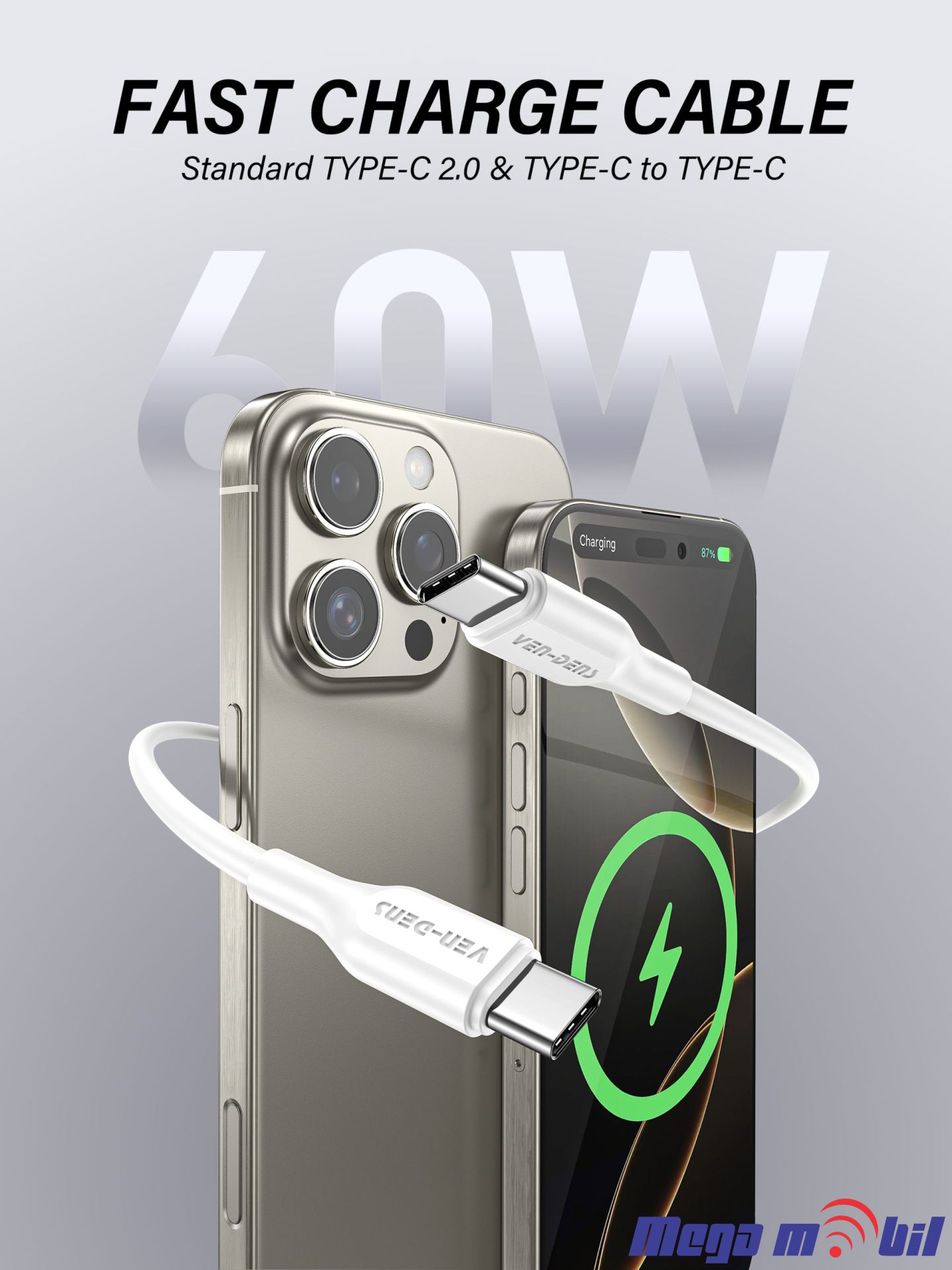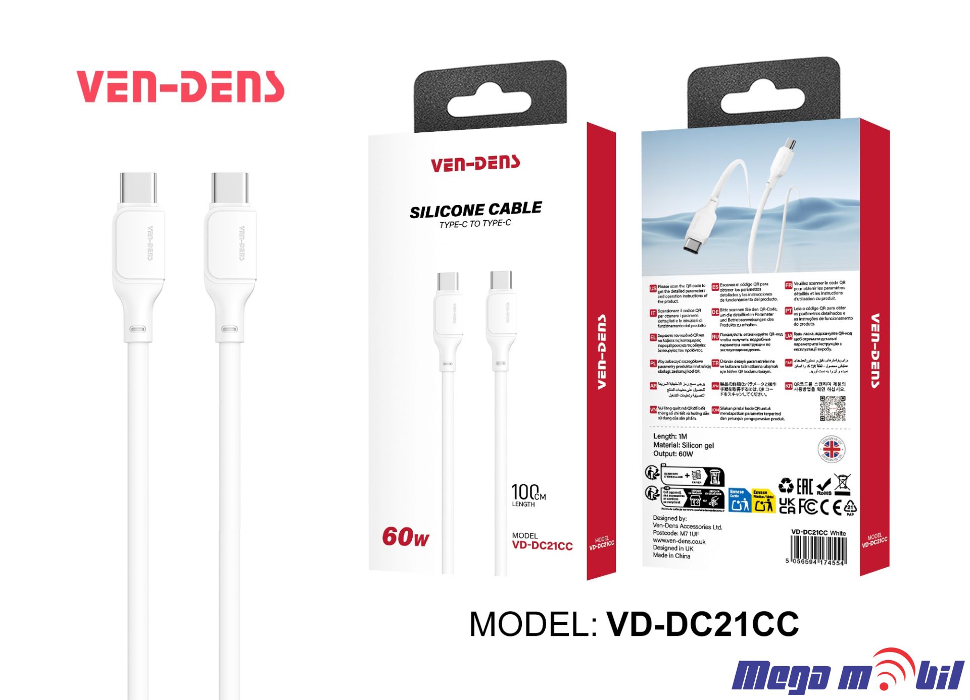 Name: Type-c to Type-c CableLength: 1MMaterial: silica gelOutput: 60WCable specification: 2C * 0.1 * 26 pins, 3C*0.08*10 pins, OD4.0mmColor: White