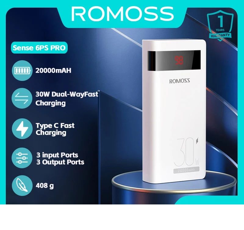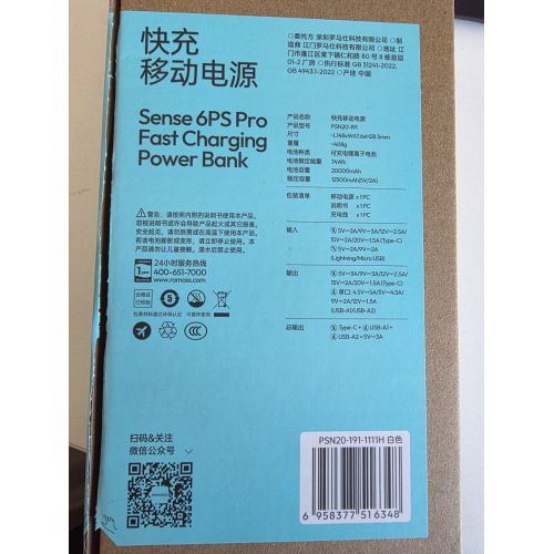 - Romoss Sense 6PS Pro 20000mAh 30W Fast Charge Power Bank – White x1