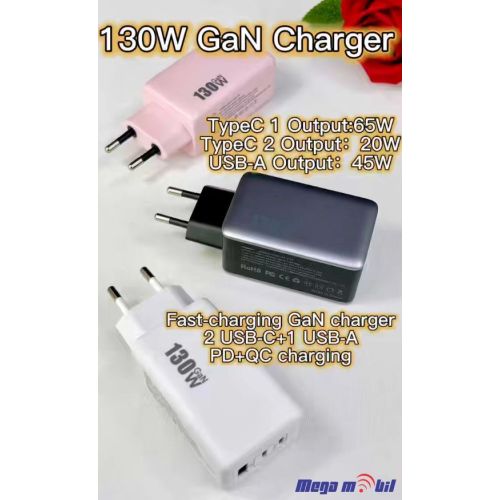 Polnac 220V Univerzalen HX-P14 2XPD+1USB GaN, PPS, PD 3.0, QC 3.0, 130W white