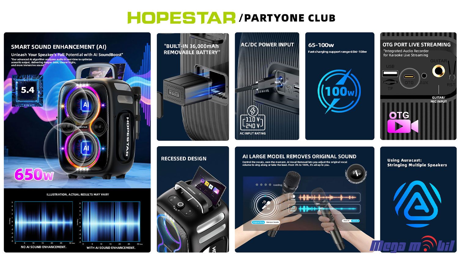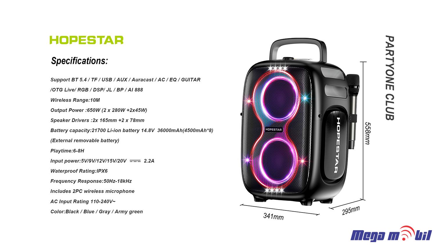 Zvucnik Bluetooth Karaoke Hopestar PARTYONE CLUB so 2 mikrofona black